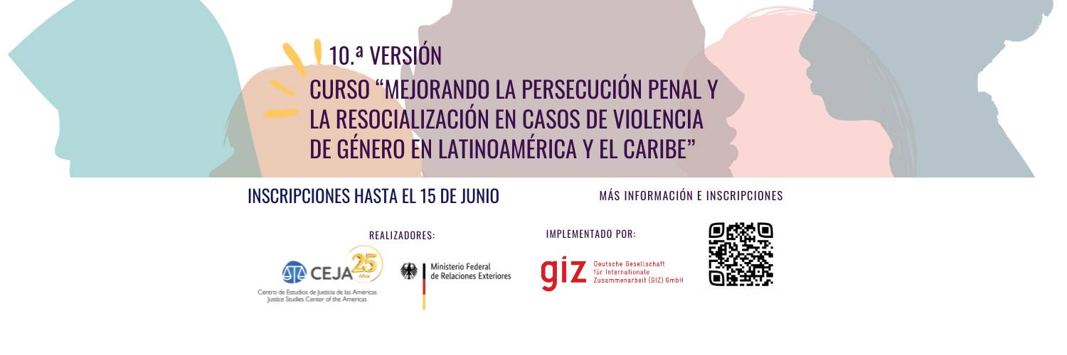Postulaciones abiertas del 12 de mayo al 15 de junio de 2025. El Centro de Estudios de Justicia de las Américas (CEJA), en conjunto con la agencia de cooperación alemana GIZ, invita a participar en la décima versión del curso “Mejorando la persecución penal y la resocialización en casos de violencia de género en Latinoamérica y el Caribe”. (Lea más.)