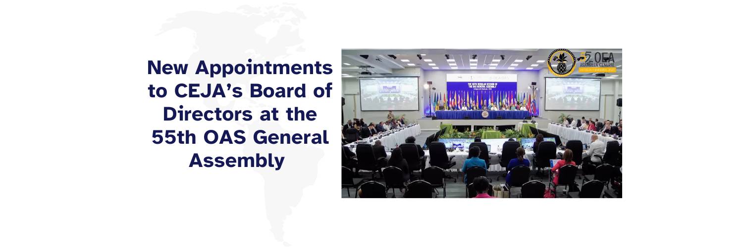 At the 55th General Assembly of the Organization of American States (OAS), held in June 2025, two new members were elected by acclamation to the Board of Directors of the Justice Studies Center of the Americas (CEJA) for the 2026–2028 term. (Read More.)